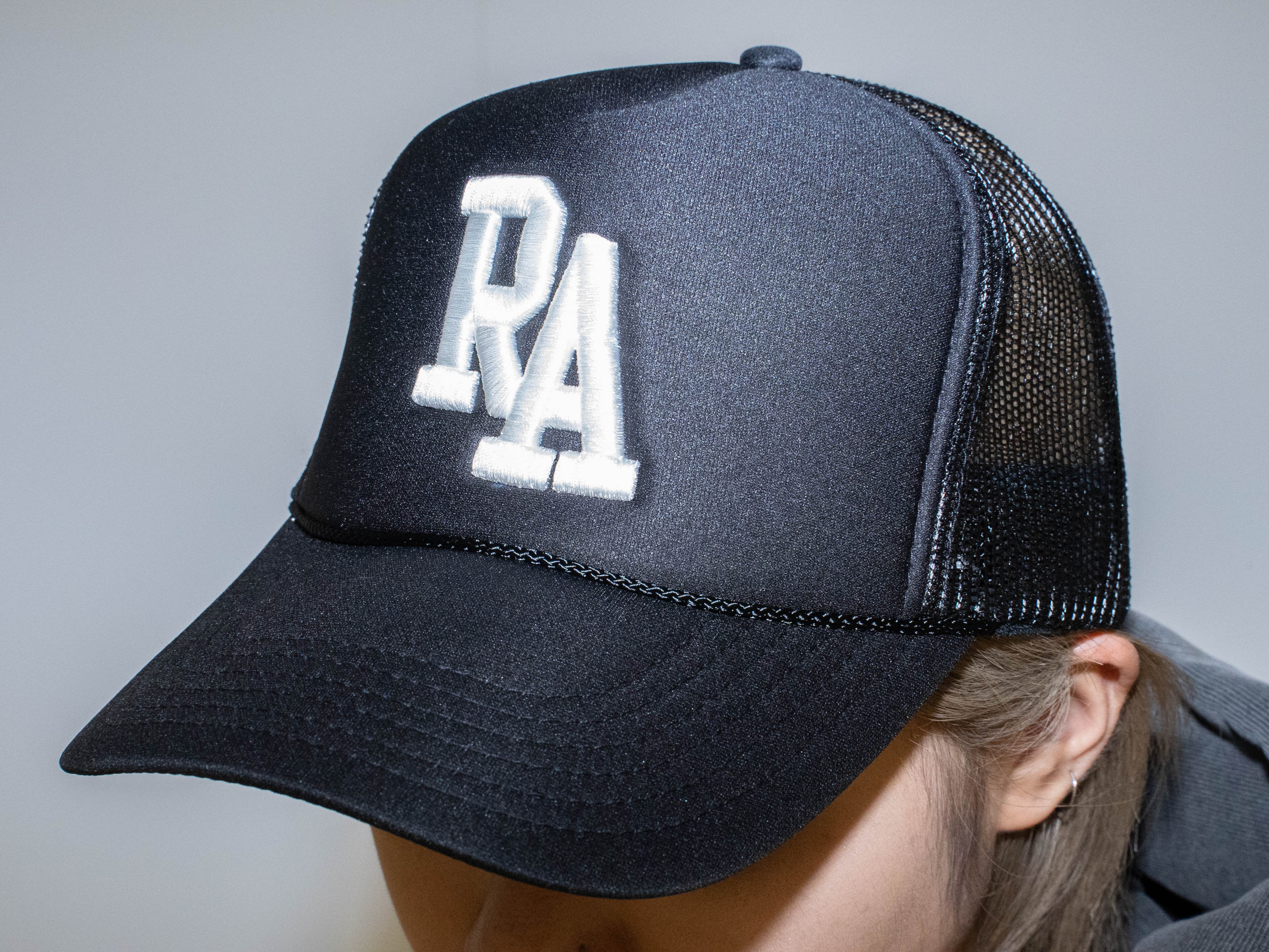 AZIによってデザインされたオールドイングリッシュ"RA"ロゴを日本の職人さんの手による刺繡で表現しました。バックはメッシュ地なので夏場の暑い時期でも快適にお過ごしいただけます。