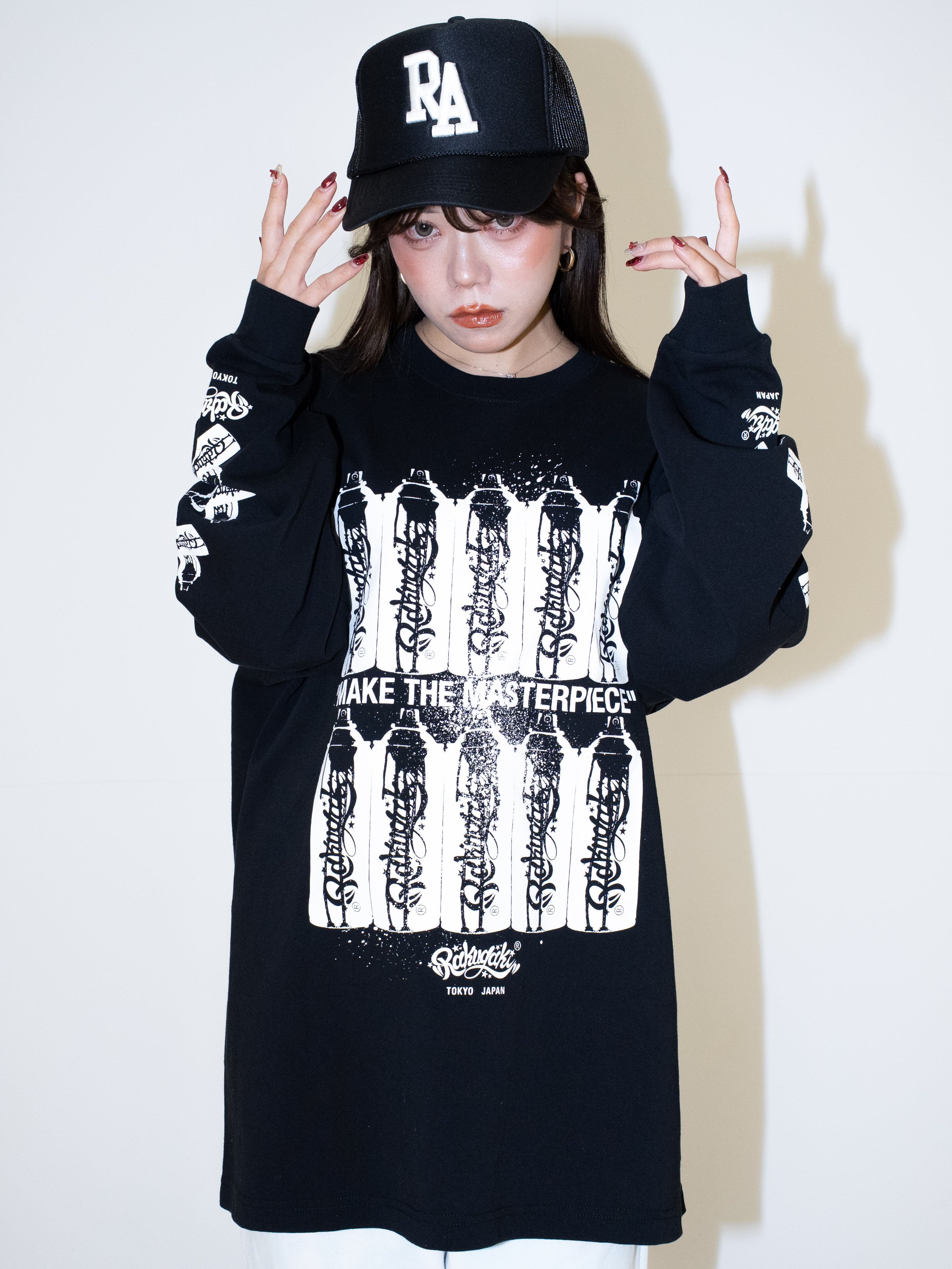・Rakugakiの最大のアイコン” 缶スプレー” を、Rakugaki 10周年の前祝いを込めてデザインしたロングスリーブTシャツです。フロントにもスリーブにも、10本の缶スプレーのグラフィックが落とし込まれています。
