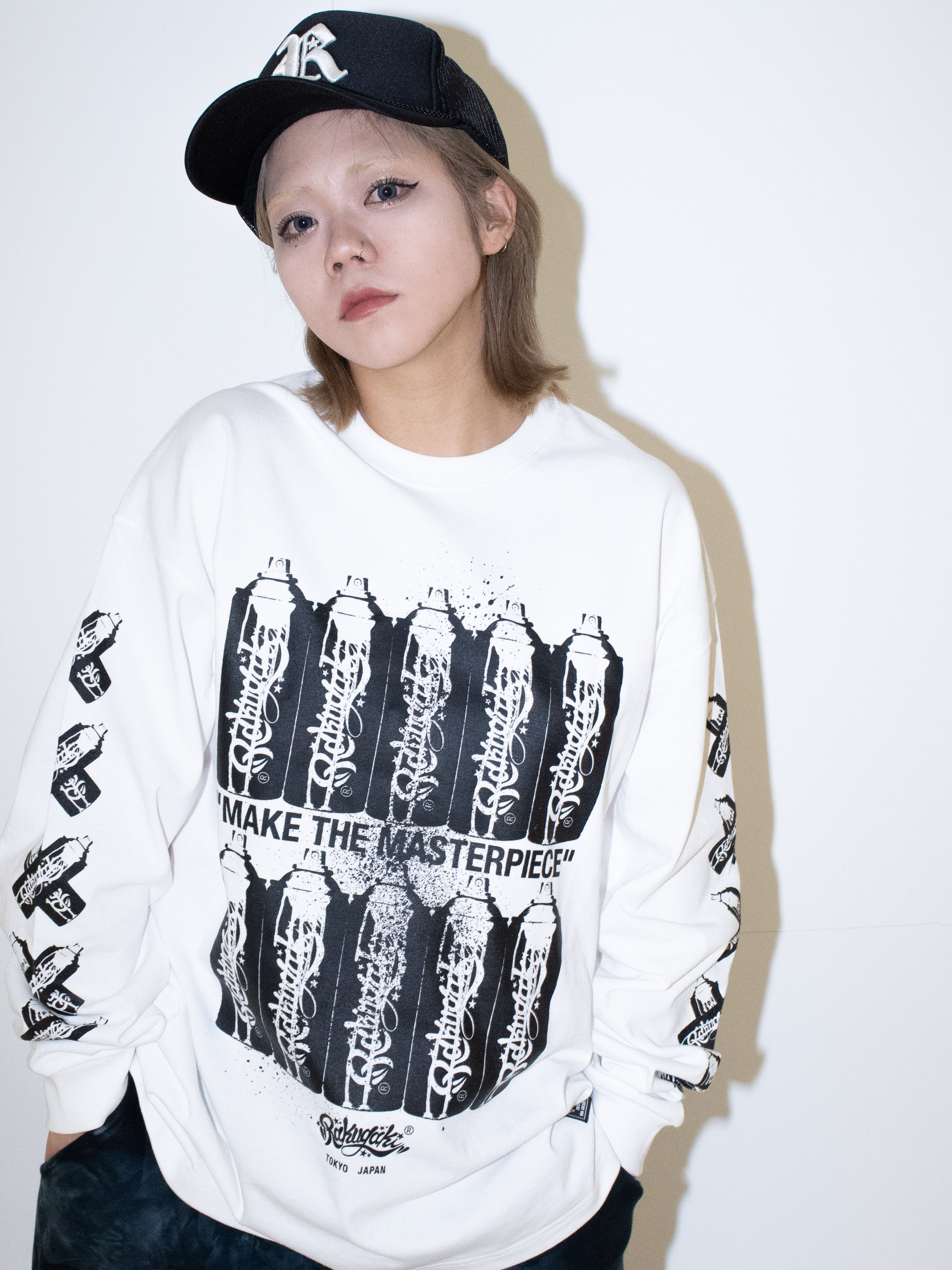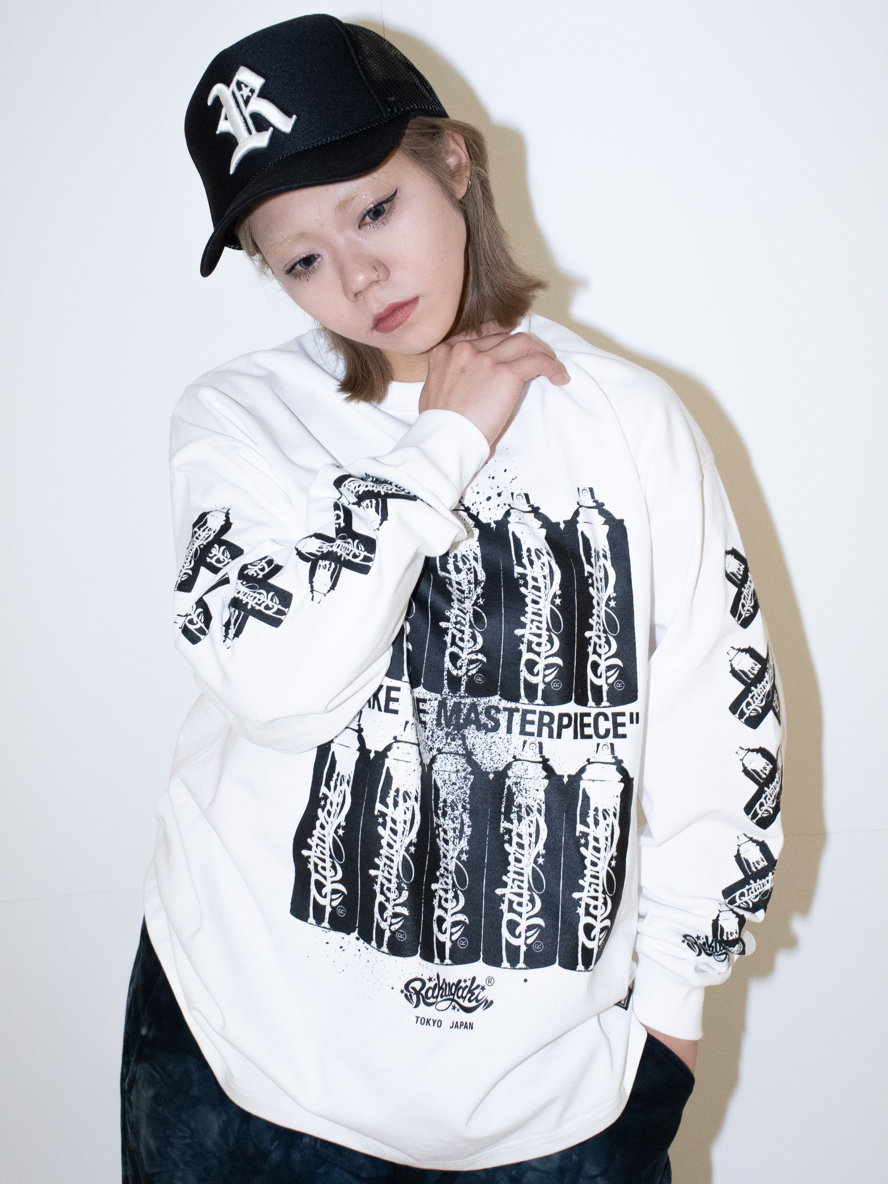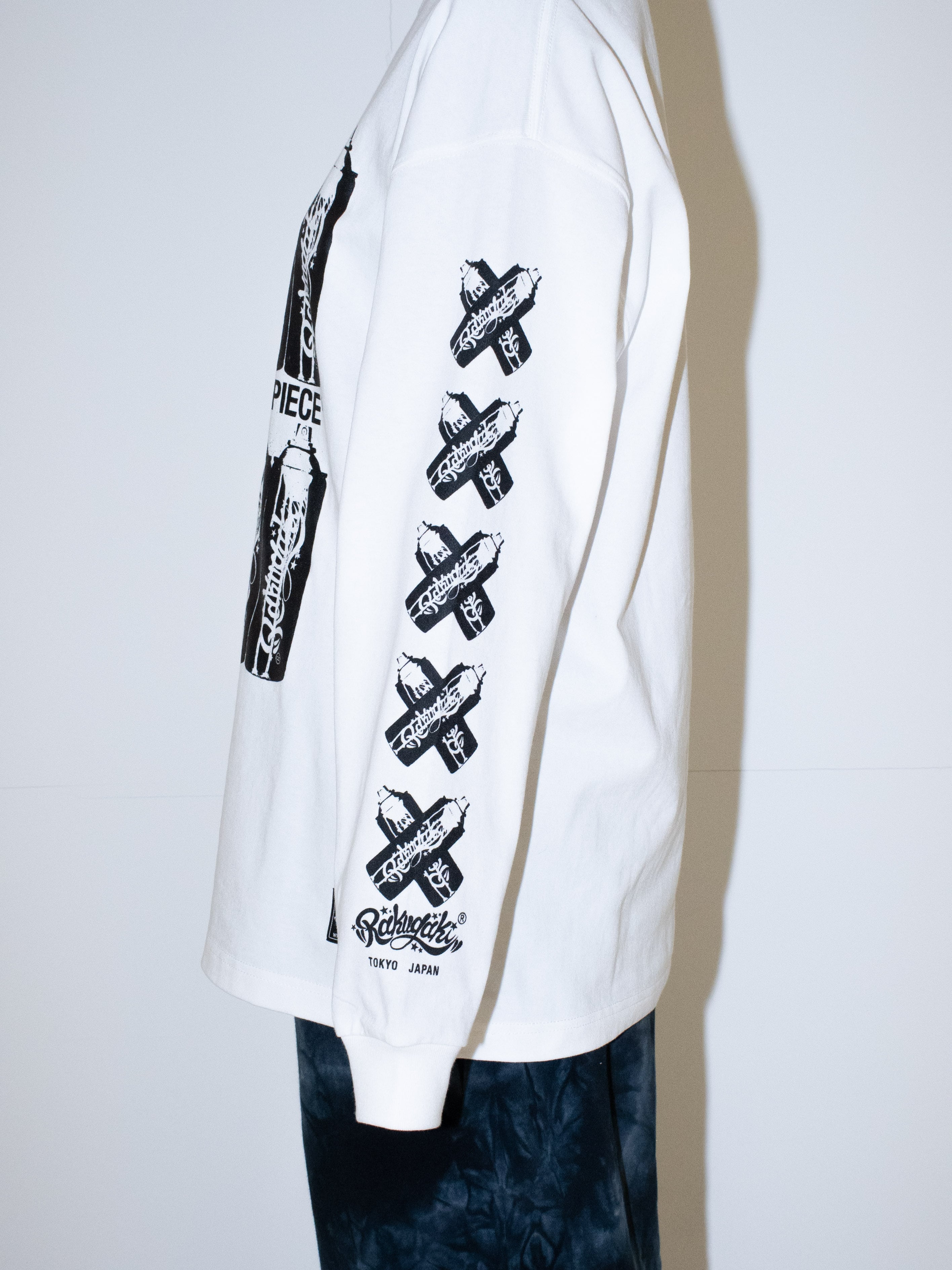 ・Rakugakiの最大のアイコン” 缶スプレー” を、Rakugaki 10周年の前祝いを込めてデザインしたロングスリーブTシャツです。フロントにもスリーブにも、10本の缶スプレーのグラフィックが落とし込まれています。