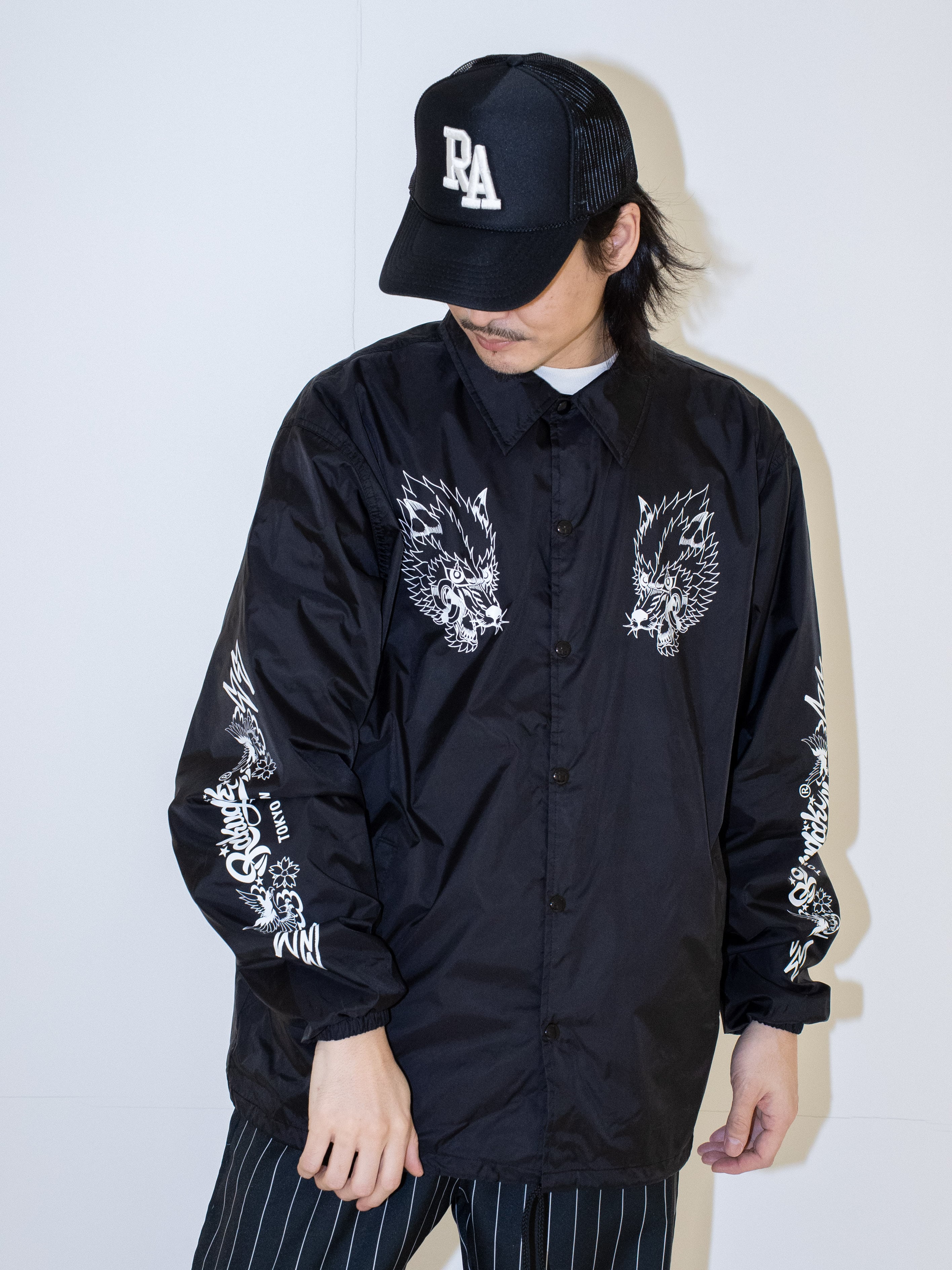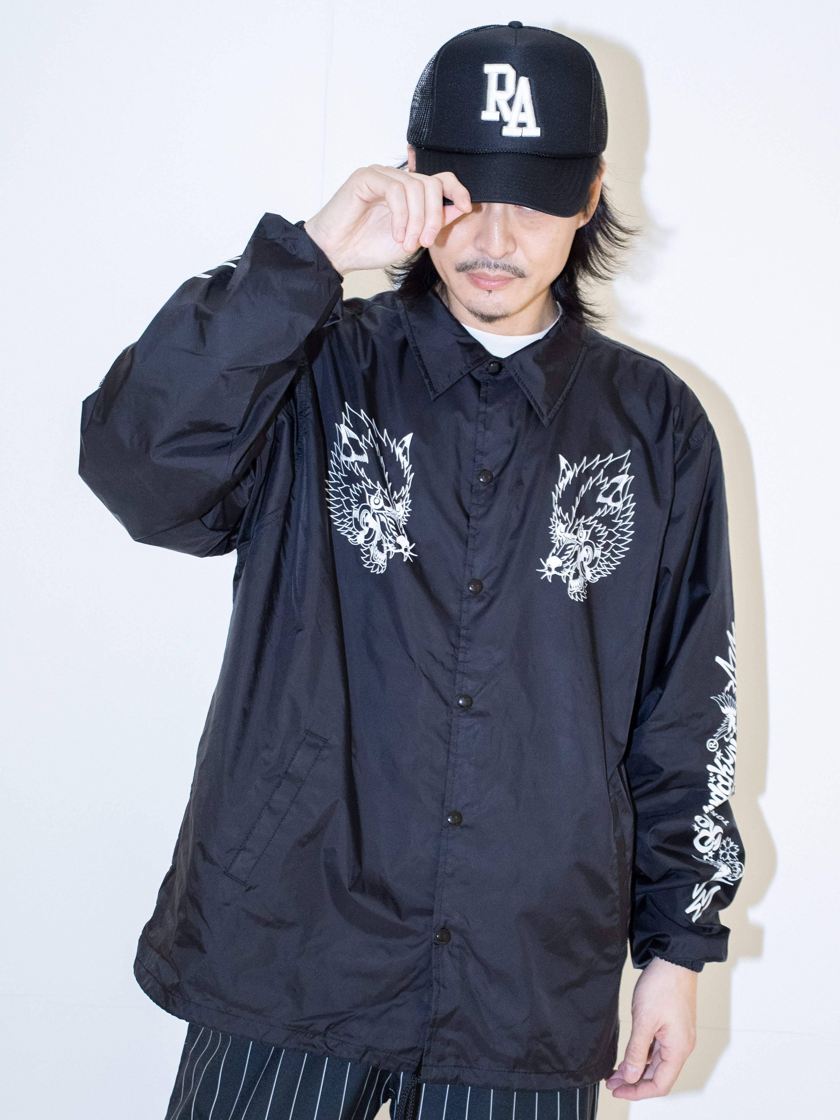 ・AZIが描き下ろしたグラフィックが落とし込まれたコーチジャケットです。